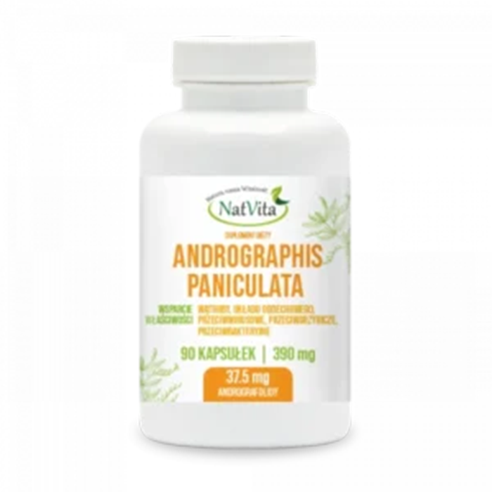 Składniki (1 kaps.): 375 mg Andrographis Paniculata ekstrakt (w tym 37.5 mg andrografolidy), 15 mg inulina z cykorii mielona, substancja żelująca: hydroksypropylometyloceluloza (kapsułka).