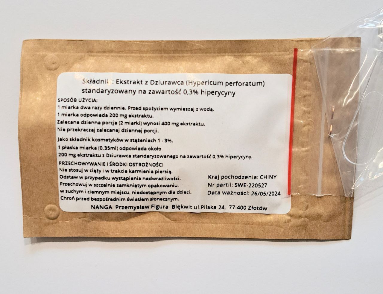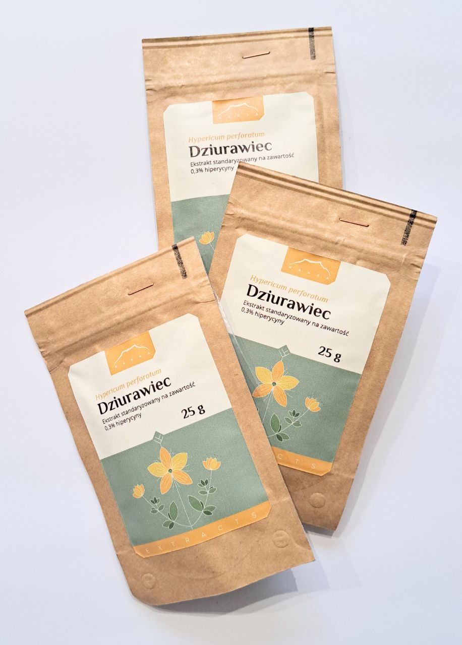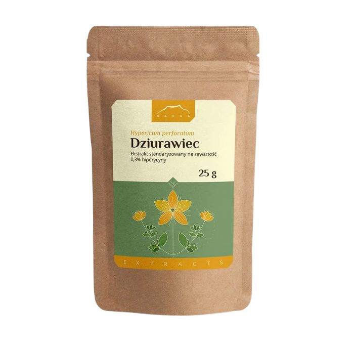 Opakowanie zawiera sproszkowany ekstrakt z dziurawca (Hypericum perforatum) standaryzowany na zawartość 0,3% hipeyrcyny.