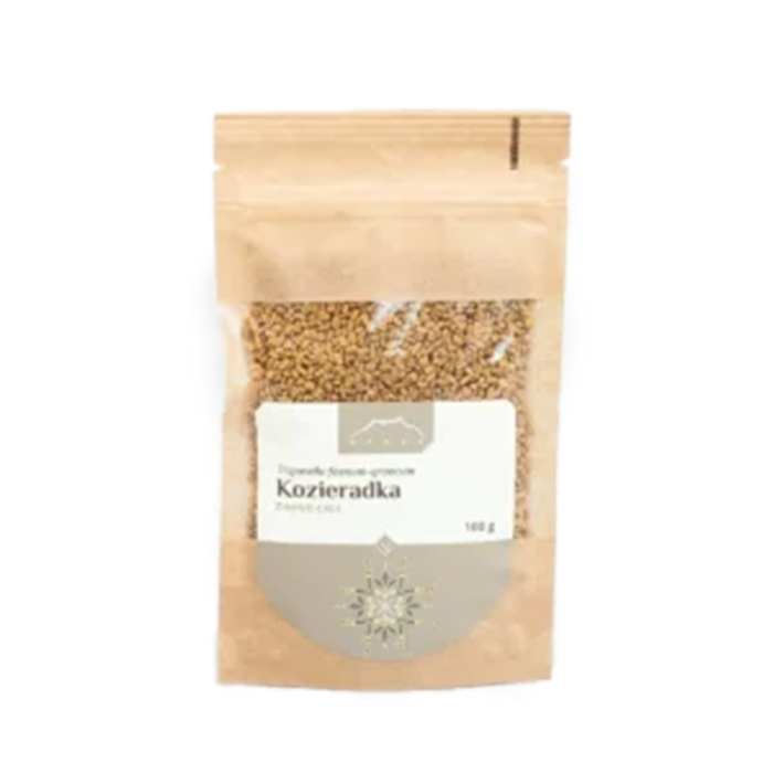 Kozieradka pospolita (Trigonella foenum-graecum) – znana również pod nazwą „boża trawka”, to drobna roślina strączkowa o jajowatych liściach i żółtych kwiatach. Naturalnie rośnie we Wschodniej Europie, na Kaukazie oraz w takich krajach, jak Uzbekistan czy Turkmenistan, a uprawia się ją na całym świecie. Surowcem zielarskim są jej nasiona oraz kwitnące ziele. Ziarna kozieradki są małe i twarde, mają asymetryczny kształt. Ponad 20% ich składu stanowią substancje śluzowe. Obok śluzów obecne w nich są także olejki eteryczne, cholina, alkaloid – trygonelina, żywice, sole mineralne, witaminy i flawonoidy. Pierwsze wzmianki o stosowaniu kozieradki pochodzą już z 1550 r. p.n.e. W medycynie tradycyjnej znajdowała ona zastosowanie w pielęgnacji skóry, jako środek wzmacniający funkcje seksualne u mężczyzn i wspierający prawidłową laktację u kobiet. Współczesne badania naukowe potwierdzają słuszność tego typu zastosowań. Regularne spożywanie nasion kozieradki pomaga również utrzymać prawidłowy poziom cukru i trójglicerydów we krwi. Nasiona można ponadto wykorzystać jako dodatek kulinarny, dodający potrawom wyjątkowy, azjatycki aromat.