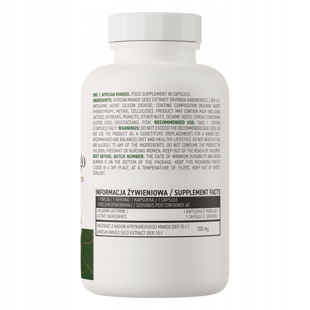 - Źródło ekstraktu z nasion afrykańskiego mango DER 10:1 - jedna porcja suplementu diety dostarcza do organizmu 700 mg ekstraktu.