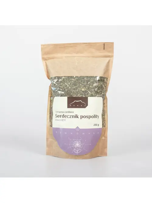 Serdecznik pospolity (Leonurus cardiaca) – nazywany potocznie lwim sercem, lisim ogonem lub gęsią stopą, to bylina należąca do rodziny jasnotowatych, wyróżniająca się drobnymi kwiatami zebranymi gęsto wokół prostej łodygi. Rodzimym obszarem występowania serdecznika jest Południowo-Wschodnia Europa i rejony Azji Środkowej. Jego kwitnące ziele stanowi cenny surowiec zielarski. Zawiera ono flawonoidy, alkaloidy, garbniki, glikozydy, cholinę, kwasy organiczne, fitosterole i olejki eteryczne. Medycyna ludowa zalecała stosowanie serdecznika osobom w stanach niepokoju, gdyż już wtedy poznano jego właściwości relaksujące. Drugi człon nazwy łacińskiej tej rośliny pochodzi od słowa cardiacus (sercowy), co nawiązuje do jej korzystnego wpływu na pracę serca. Ziele to skierowane jest do osób dbających o dobrą kondycję układu krążenia i jego najważniejszego narządu – serca. Ponadto serdecznik sprawdza się u osób potrzebujących ukojenia w trudnych, stresujących chwilach – pomaga on załagodzić napięcia w ciele i wyciszyć myśli, a także sprzyja spokojnej nocy.